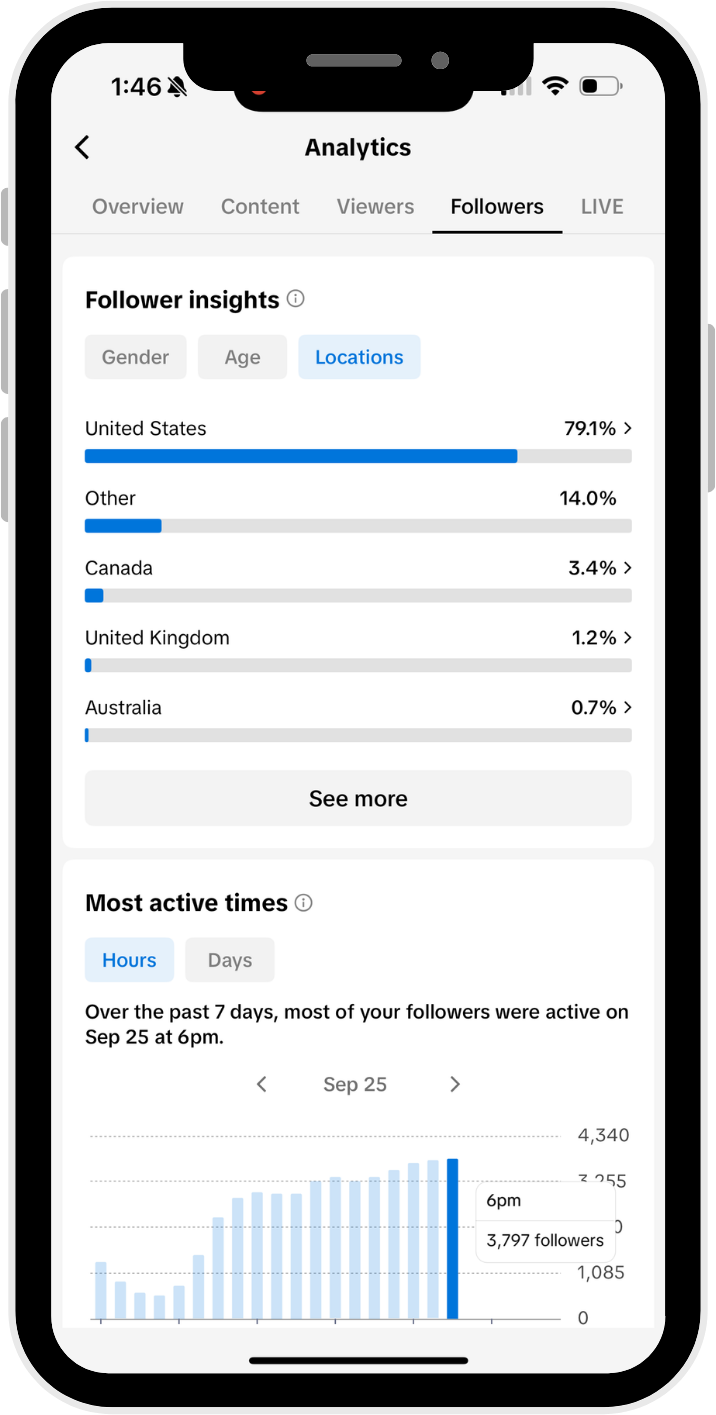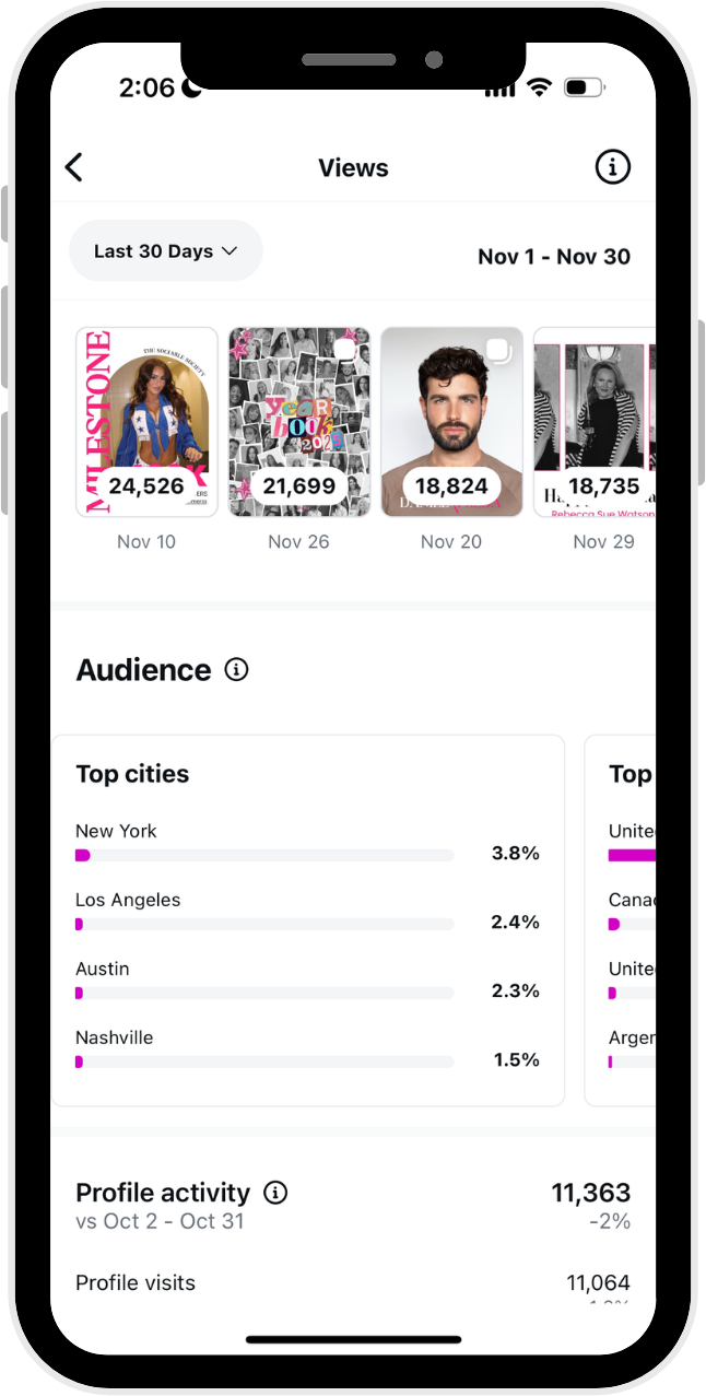- Review your top-performing posts (tap on a post for detailed metrics).